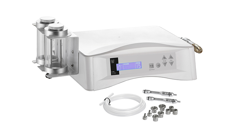 Multifunktionsgerät mit 2 Funktionen: Mikrodermabrasion mit Diamantaufsätzen und Mikrodermabrasion mit Mikrokristallen aus Aluminiumoxid.